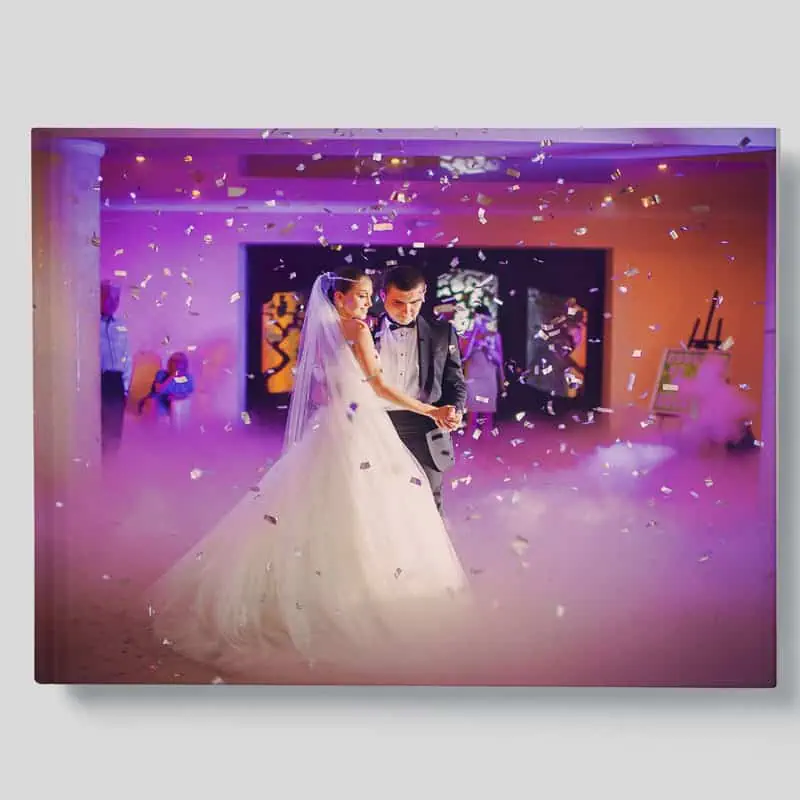 Fotolivro com capa dura fotográfica e abertura panorâmica no formato 42 x 28,5 cm
